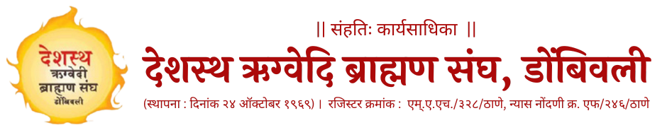 I will always need your co-operation for the above mentioned pledge to make this is our dream and passion. Deshastha Rugvedi Brahmin Sangh Dombivli will be an ideal and respected institution.